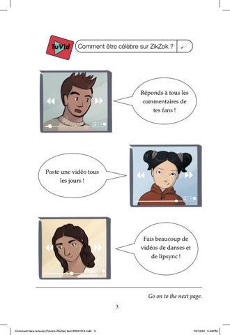 This book is written in simple French, using approximately 250 unique words. It is appropriate for middle- and high school-age learners and contains helpful illustrations on almost every page. It will appeal to students who appreciate the challenge of gaining recognition on social media.