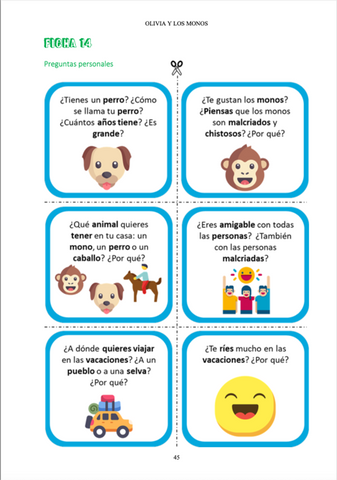 GUÍA COMPLETA DEL MAESTRO – OLIVIA Y LOS MONOS is on PDF format. It is a fabulous tool to have productive and fun classes.